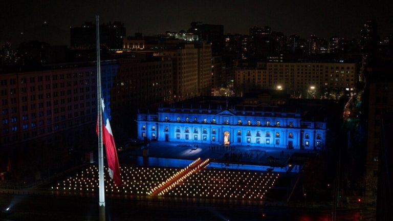 Piñera anunció el duelo del lunes y martes en un acto simbólico en la céntrica plaza de la ciudadania, en santiago, donde se encendieron 460 luces en memoria de las víctimas mientras un miembro de la policía de carabineros lideró un minuto de silencio y la chilena.